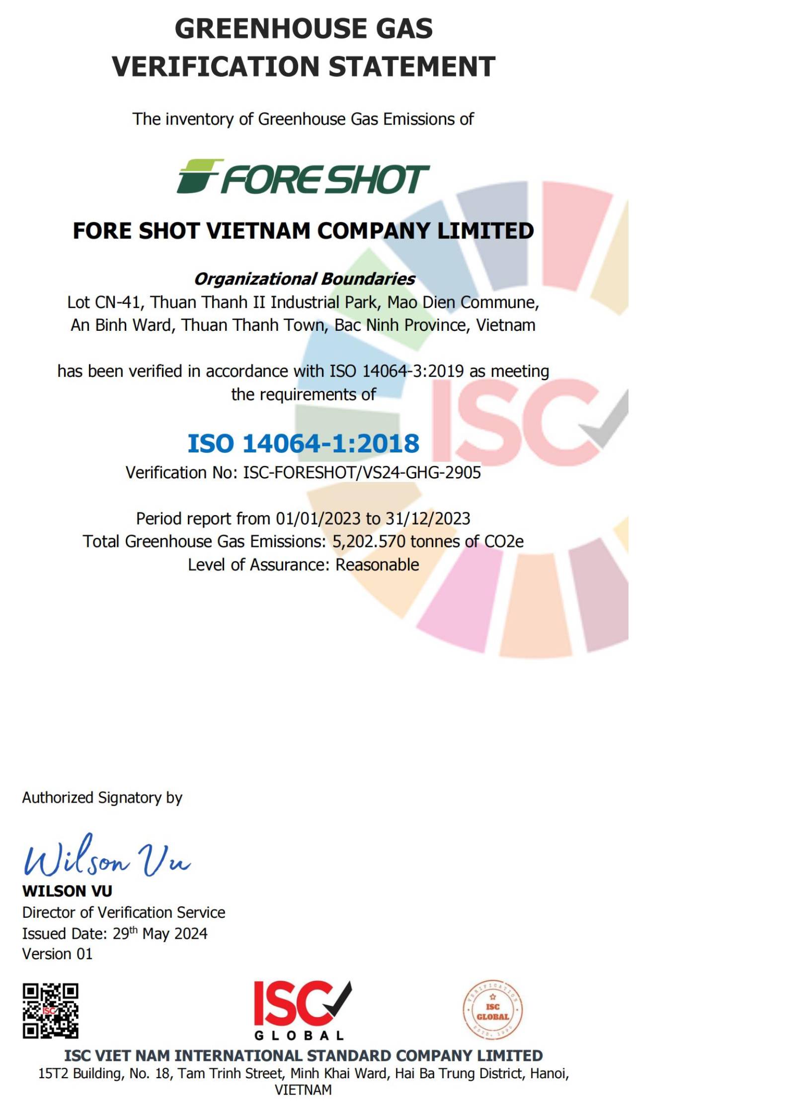 Das Vietnam-Werk hat die ISO 14064-Zertifizierung für die Überprüfung von Treibhausgasemissionen erhalten.
