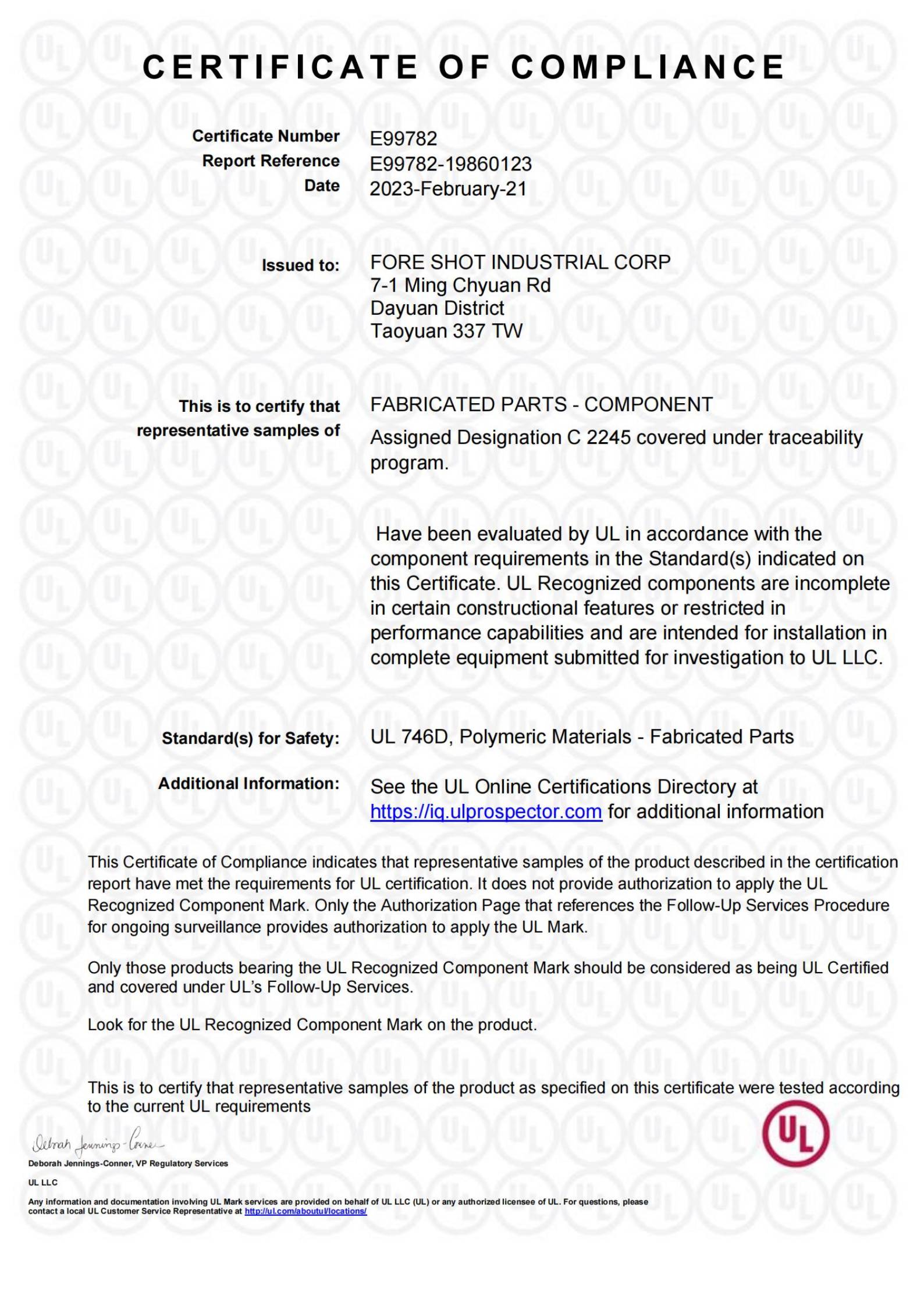 FORESHOT(TW) hat die UL-Zertifizierung erhalten und ist unter den Inspektions- und Nachverfolgungsdiensten von UL LLC abgedeckt.